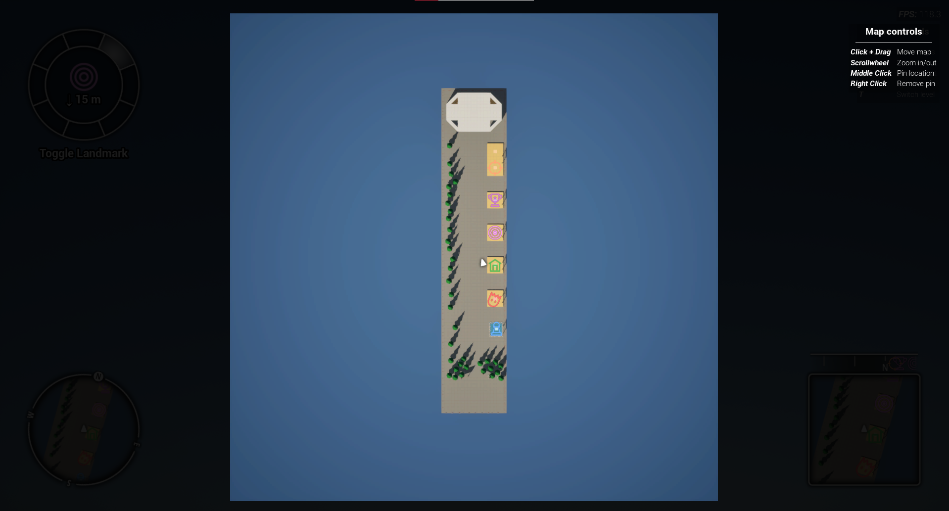 The BigMap widget (WBP_LN_BigMap) is a UserWidget that displays landmarks in a top down fashion. However, in contrast with the Minimap, the BigMap will: